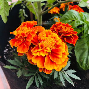*Leave with flower and onion self-watering grow bag pot that includes a small clay olla, and freshly harvested herbs from my garden!